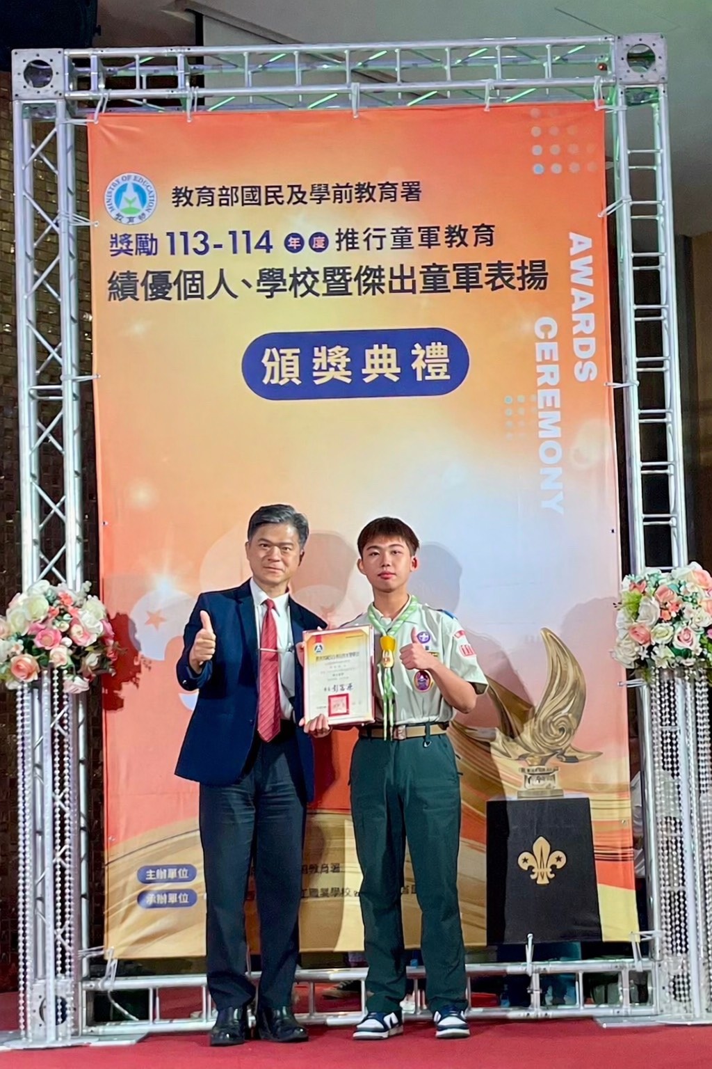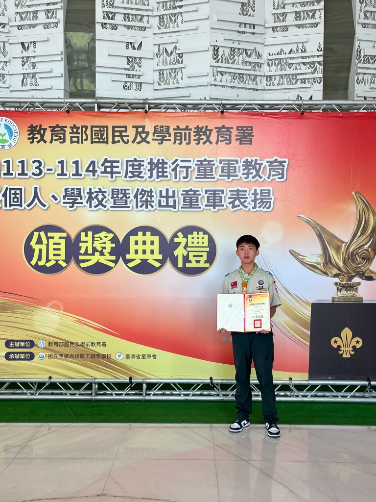 115年3月19日仁德醫專生命關懷事業科五專114級101班周承諺同學榮獲 教育部國教署 113-114年度推行童軍教育 傑出童軍獎115年3月19日仁德醫專生命關懷事業科五專114級101班周承諺同學榮獲 教育部國教署 113-114年度推行童軍教育 傑出童軍獎